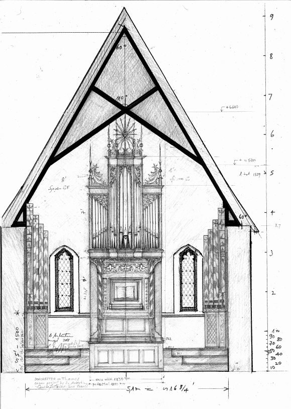“I heartily commend Bernard Aubertin's proposed new organ for St Birinus. With ingenuity that is such a hallmark of this builder, Mr Aubertin has produced a design ideally suited to the worship and architecture of the church. His tonal design makes the most of a small space, providing two contrasting choruses that can be mixed in various combinations; his proposed pedal pipework, sitting outside the main case, serves as the instrument's tonal foundation and also as a charming and distinctive visual feature. As is plainly evident from his drawings, which stem from a careful and intuitive appreciation of the building's proportions and character, the casework will immensely enhance the architecture of St Birinus. Like a Gothic reliquary, this will provide grand architecture in modest dimensions.